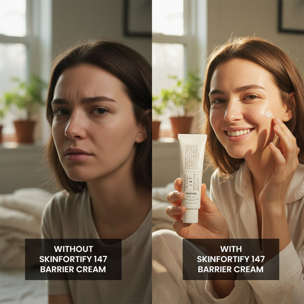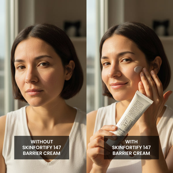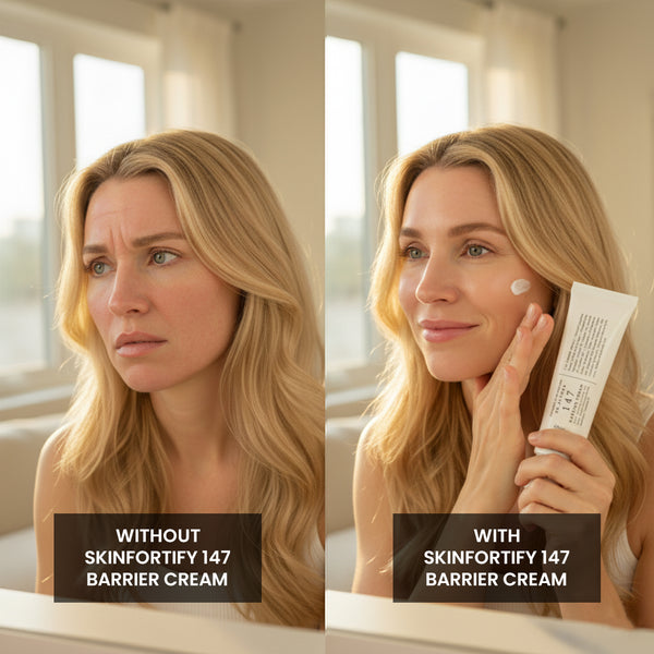 Most moisturizers only sit on the surface, leaving skin greasy without truly repairing. SkinFortify 147 Barrier Cream goes deeper ,calming, hydrating, and rebuilding your skin barrier with dermatologist-inspired ingredients. Generic Moisturizers: Heavy, greasy feel • Added fragrances that irritate • Short-term hydration only • Not designed for sensitive or damaged skin. 147 Barrier Cream: Lightweight, fast-absorbing • Fragrance-free and gentle • Long-lasting hydration with ceramides + hyaluronic acid • Azulene to reduce redness and irritation.